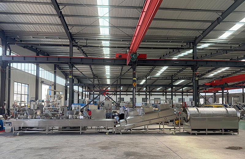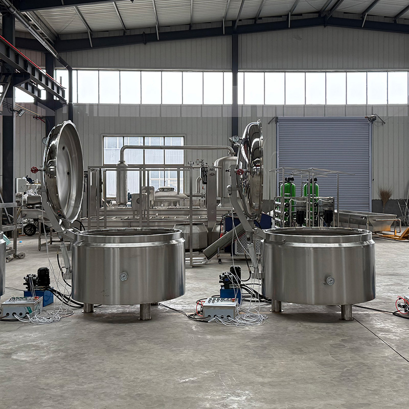 公司主要生產品種有多爪攪拌炒鍋、全自動行星攪拌炒鍋、夾層鍋、高壓蒸煮鍋、方形鹵煮鍋、全自動爆米花炒鍋、氣泡清洗線、巴氏殺菌漂燙線、風干流水線、醬料攪拌料車、火鍋底料炒料機、全自動醬料攪拌炒鍋、預制菜加工設備、全自動熬糖鍋等食品設備,支持定制加工。